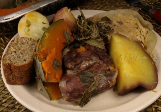 뉴질랜드 원주민 전통 쇼 마오리 민속 쇼를 보면서 전통 식사 항이 디너